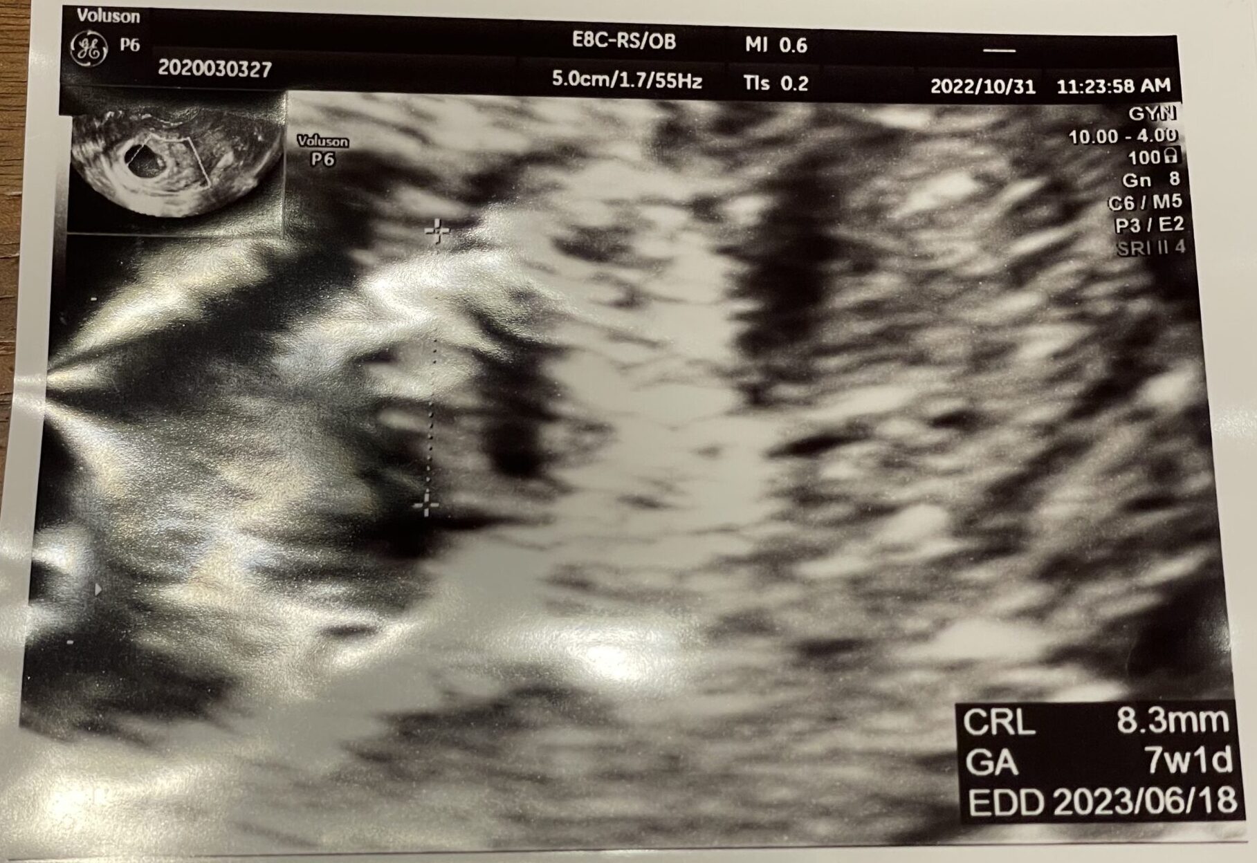 初めて見たわが子は、胎嚢のすみっこで縮こまっているように見えて、すごく愛おしく思えました。