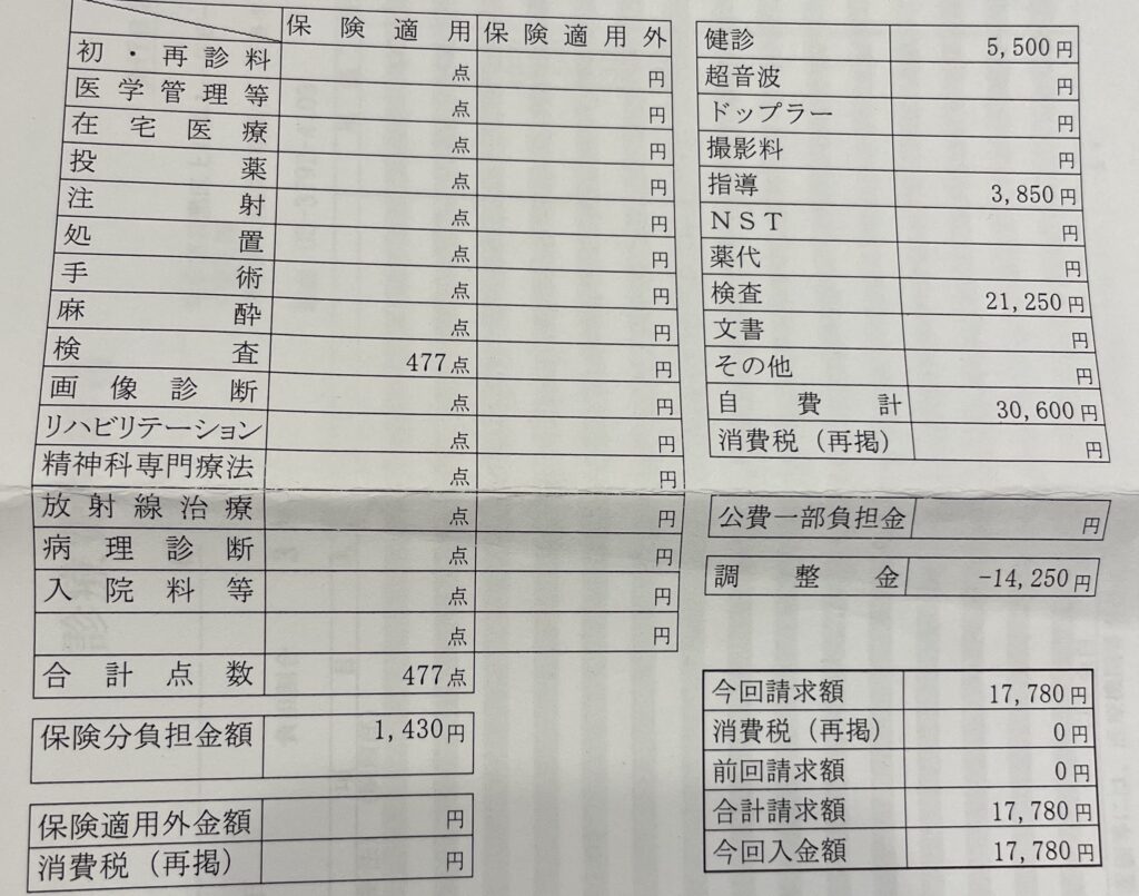 妊婦健診や子宮頸がんのクーポンがなければ、32,030円でした。