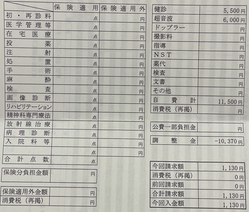 最初に先生がエコーでさまざまな検査をし、検査の結果はこの後にある通常の健診時に医師から聞くという流れでした。