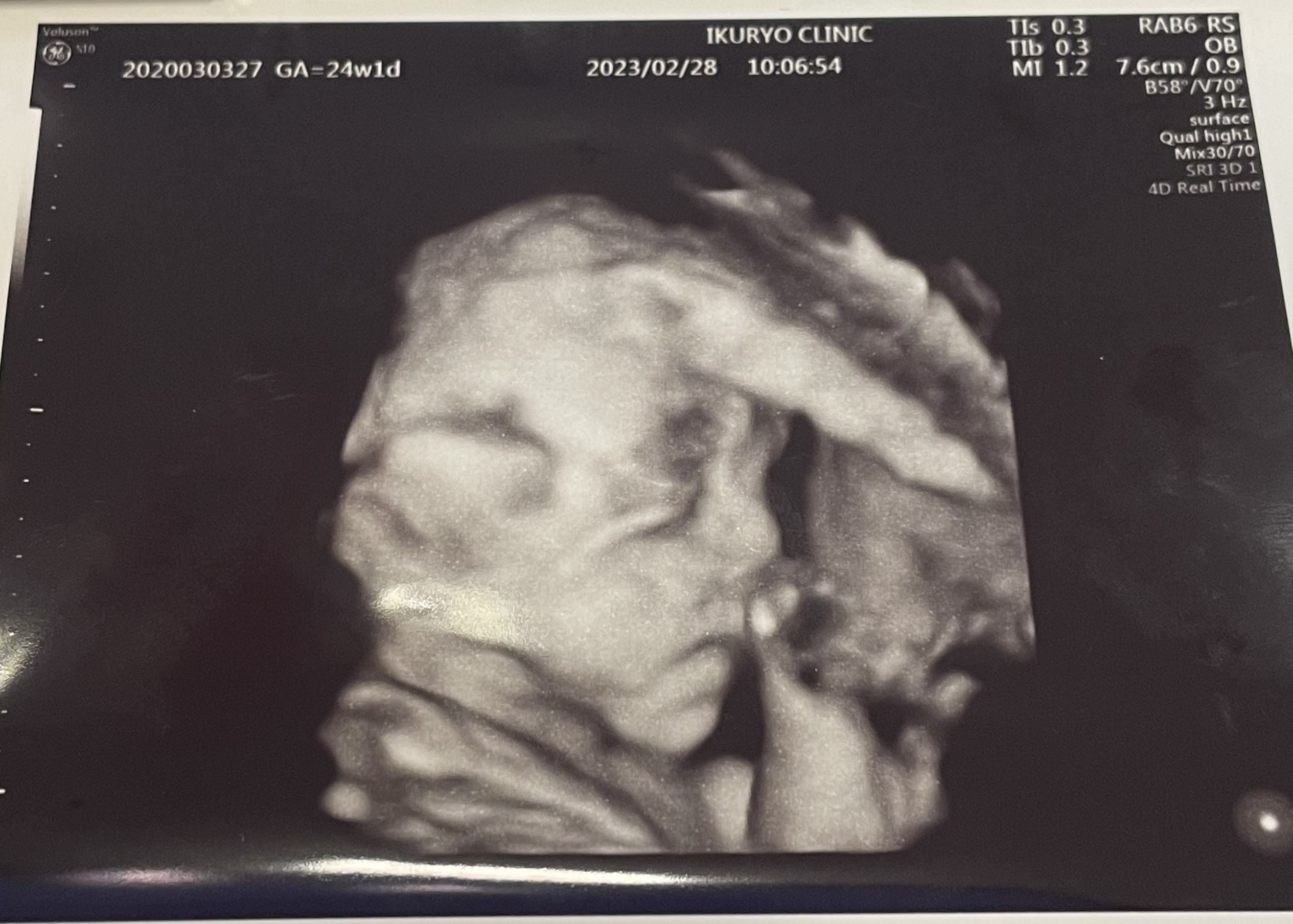 妊婦健診では、4Dエコーでお腹の中で成長したお顔を見られて感動しました。
