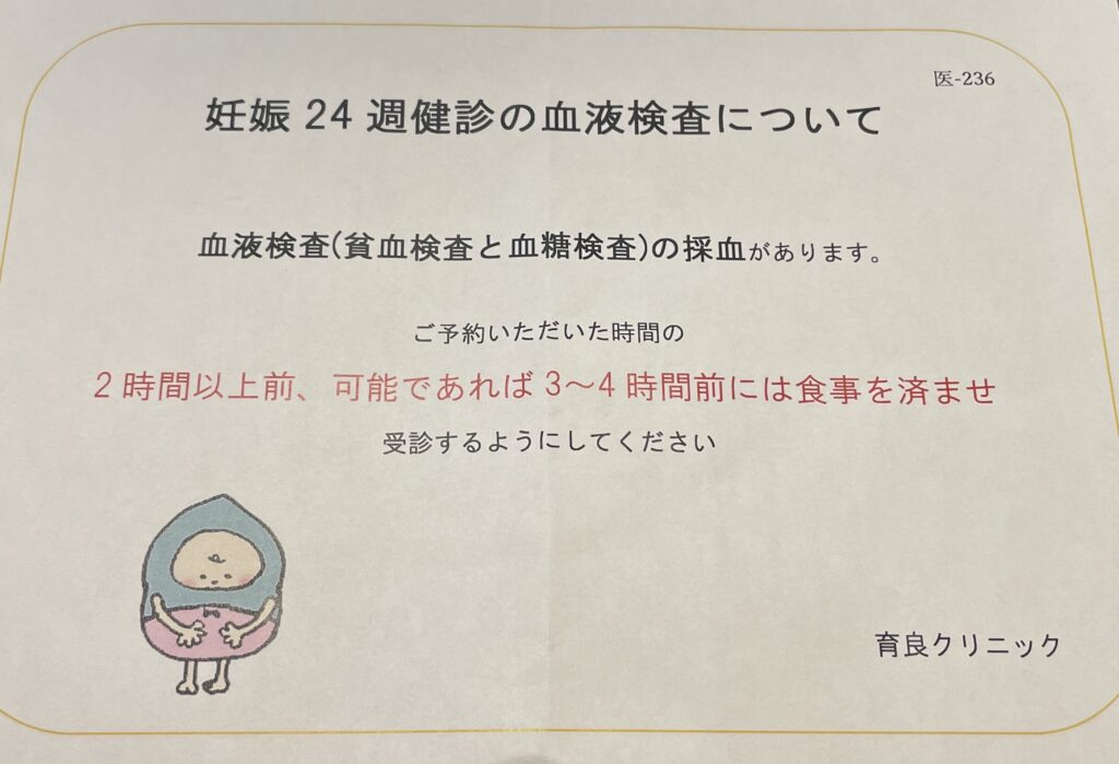 妊娠中期の血液検査として、妊娠24週の妊婦健診の時に血液検査をします。