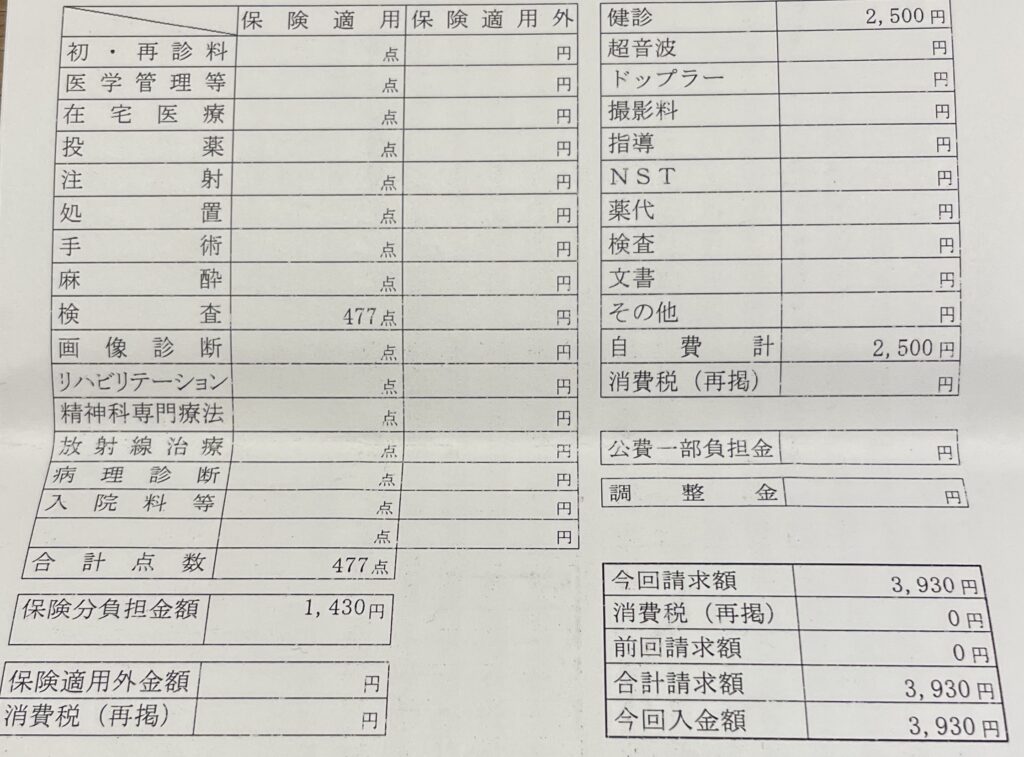 2023年1月下旬。今回は妊婦健診ではありません。