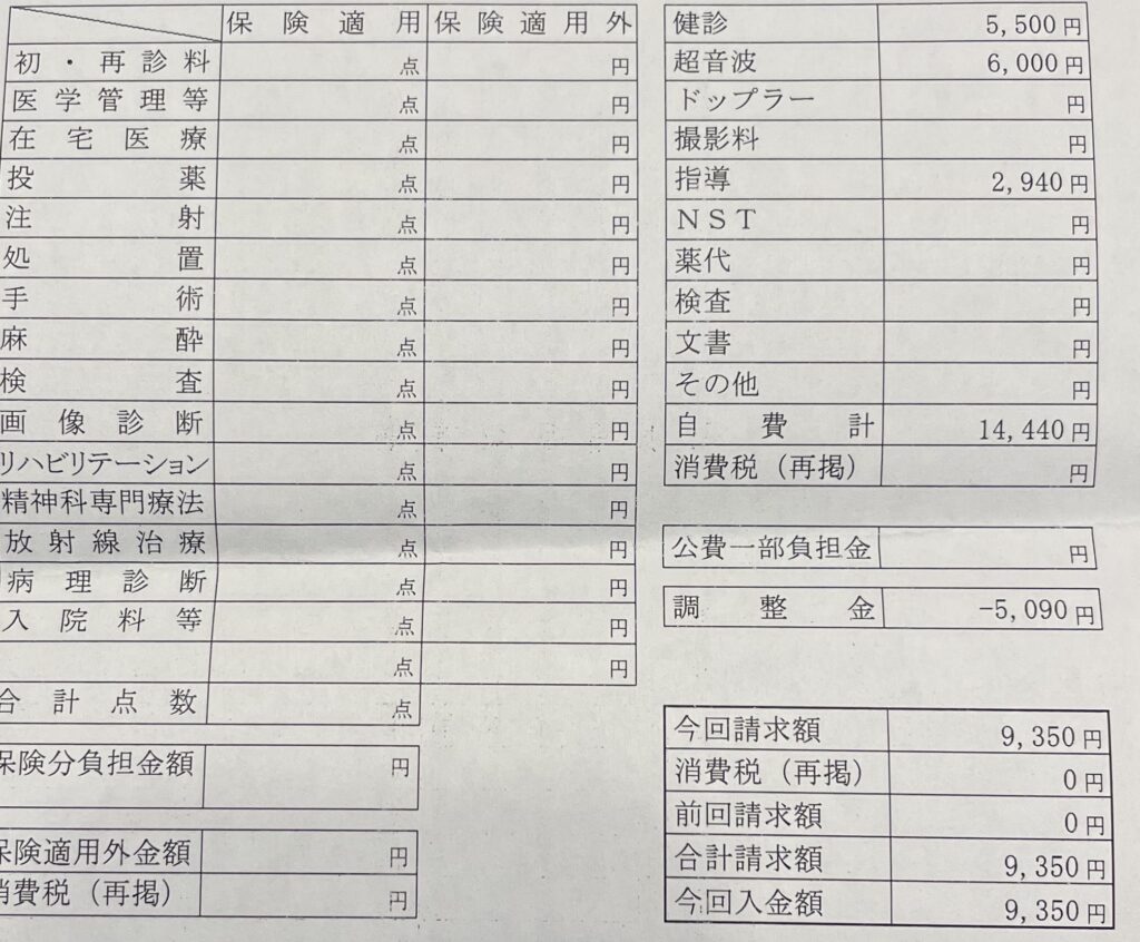 妊娠20週の時の超音波スクリーニング検査はクーポンがあったのですが、今回はなかったのでちょっとお高めです。