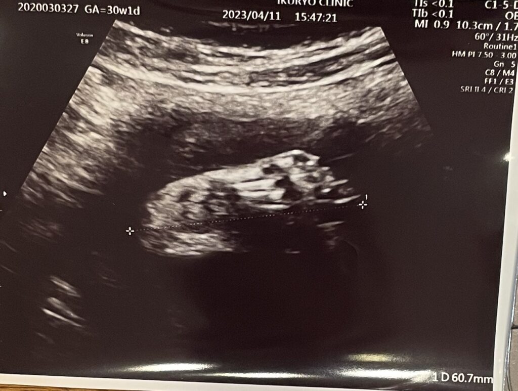 あとは、「ここに頭があって、今ちょうど足がお母さんの肋骨あたりにありますよ〜」など、赤ちゃんの体がわたしのお腹の中でどういうふうになっているのかも教えていただけて、なんだかほっこりする検査となりました。