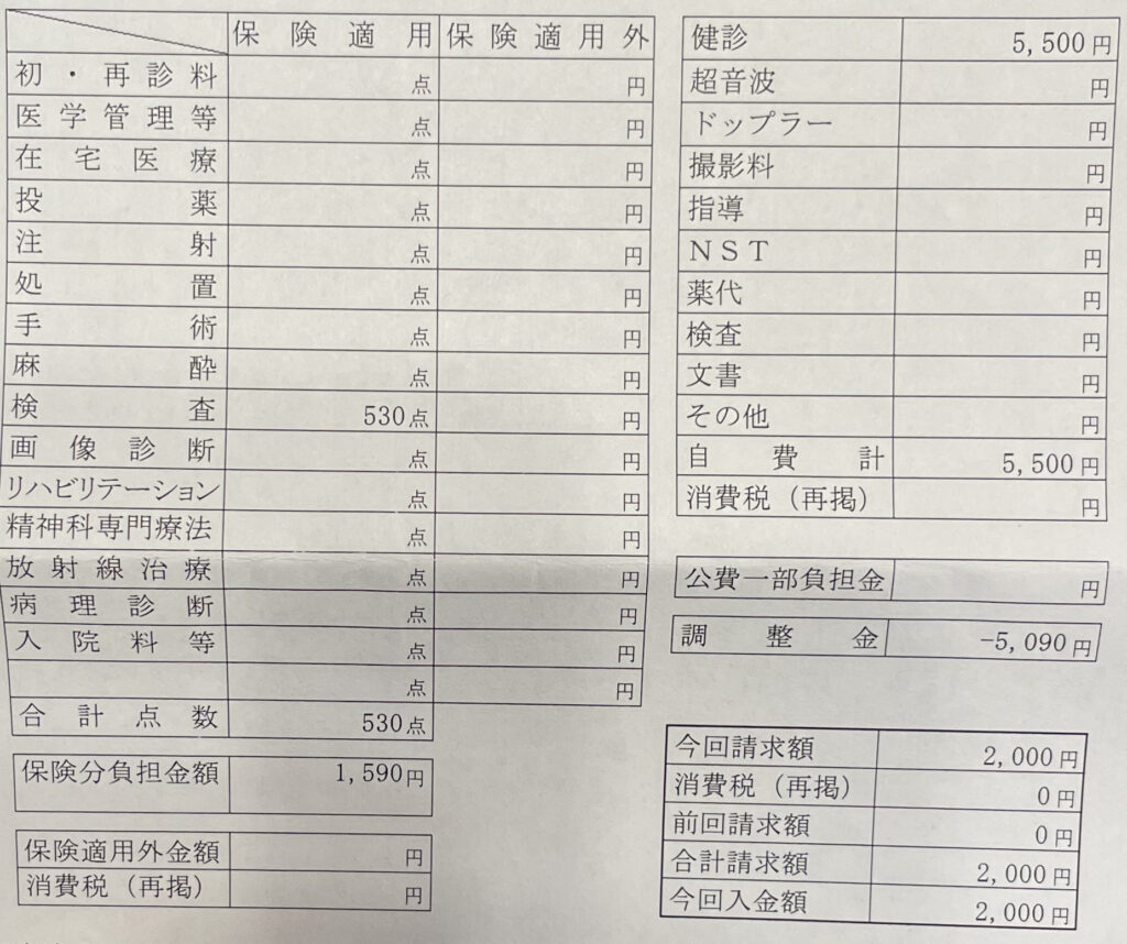 10回目の世田谷区妊婦健診の費用
