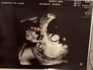 4Dのエコーの最中にお腹の中で赤ちゃんがすごく動いていて、映像が乱れていたのが怖かったです^^;