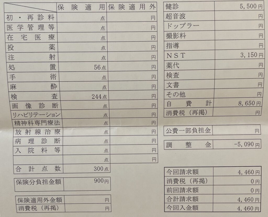 14回目の世田谷区妊婦健診の費用
